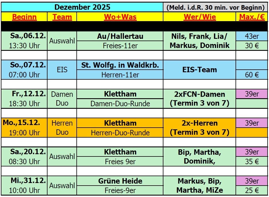 Die u.a. Einteilung der Spieler*innen ist NICHT bindend !